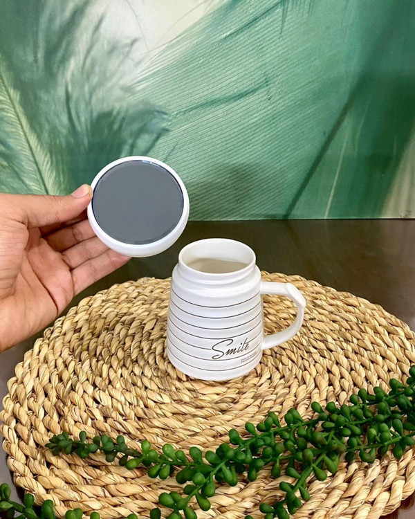 ماگ smile موجود شد در آینه ای سرامیکی در واشر دار موجود در 2 رنگ سفید و مشکی ارتفاع 12 ، قطر 6 سانت ثبت از طریق سایت و #ماگسرامیکی#ماگ_درب_آیینه#ماگدربدار#جهیزیه#گیفت