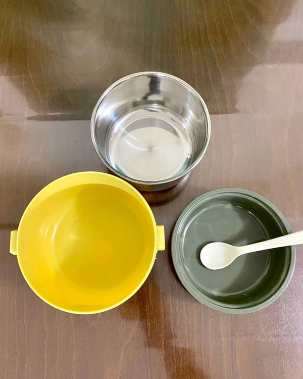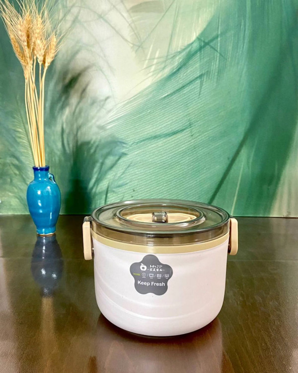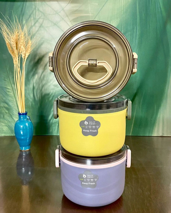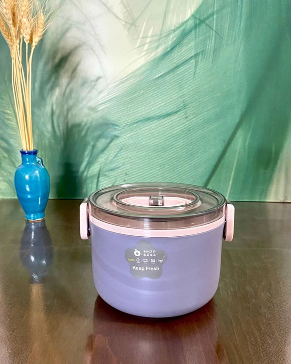 موجود فقط سفید و بنفش لانچ باکس مدل گرد دو طبقه جنس استیل و پلاستیک فشرده دارای دسته و قاشق در قفلدار ارتفاع 11 ، قطر 14 سانت قابل استفاده داخل فر ، ماکروفر و ماشین ظرفشویی ثبت از طریق سایت و #ظرف_غذا