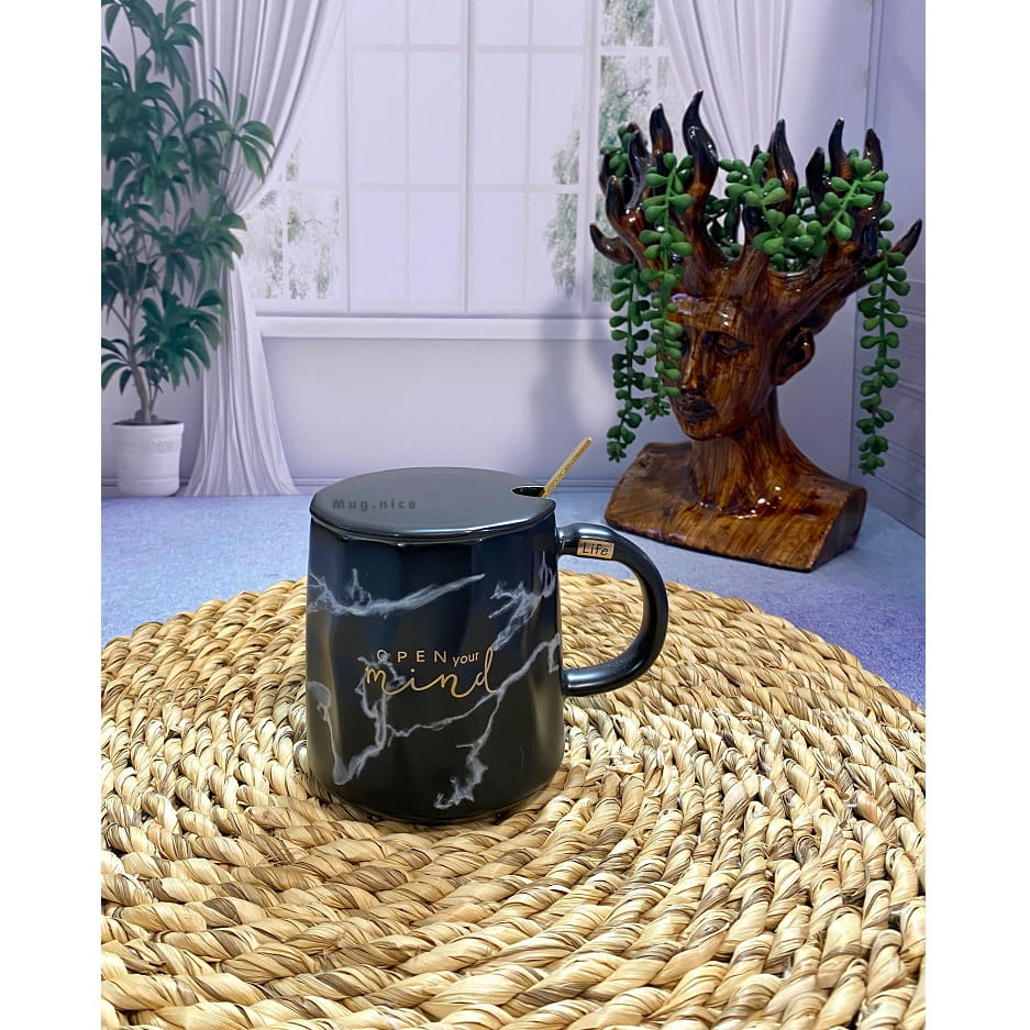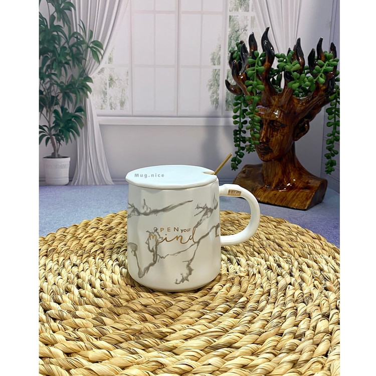 ماگ ماربل سرامیکی دارای درب و قاشق طلایی است. مناسب استفاده روزانه برای انواع نوشیدنی های سرد و گرم در منزل و محل کار میباشد.