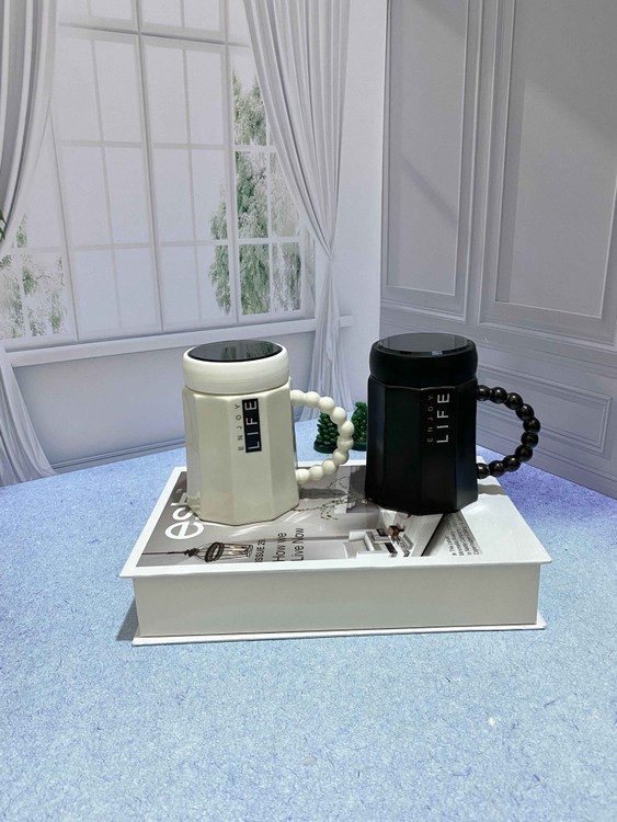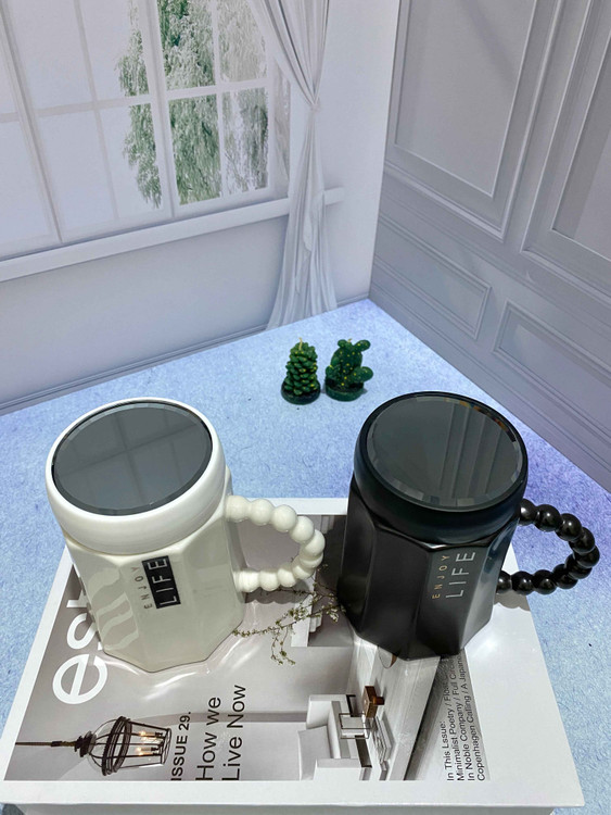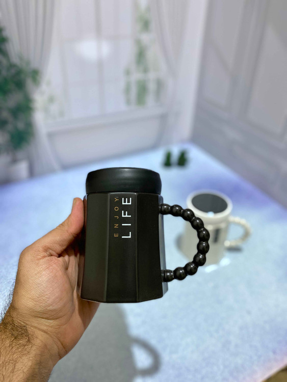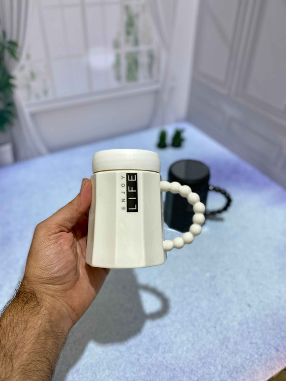 ماگ سرامیکی مدل در آینه ای است. باز و بسته شدن در بصورت پیچی میباشد و دسته ماگ بصورت مرواریدی است.