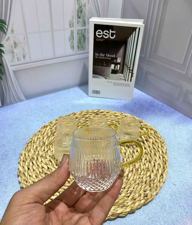 شات قهوه پیرکس مدل دسته طلایی است. سبک و خوش دست مناسب استفاده روزانه در منزل و محل کار میباشد.