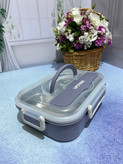 ظرف غذا مدل دو طبقه دارای یک طبقه استیل و یک طبقه پلاستیکی است. دارای در قفل دار و واشر میباشد. دارای دسته برای حمل راحت تر و قاشق است. قابل استفاده داخل فر و ماکروفر میباشد. مناسب مدرسه ، مهد ، محل کار و...