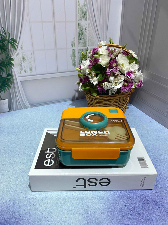 ظرف غذا ی خاص پرطرفدار لنز دوربین دارای قاشق و چنگال است. دارای در قفل دار و واشر است. دارای دو محفظه جداگانه میباشد. قابل استفاده داخل فر و ماکروفر میباشد. مناسب محل کار ، مهد ، مدرسه و ...