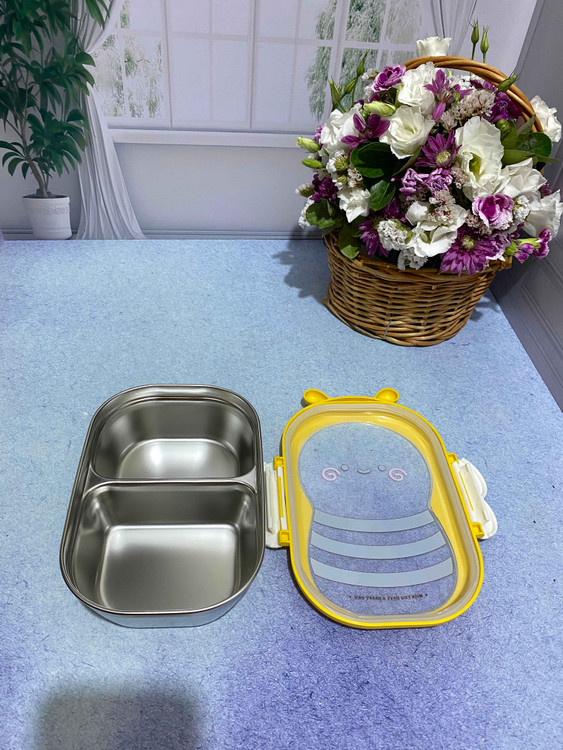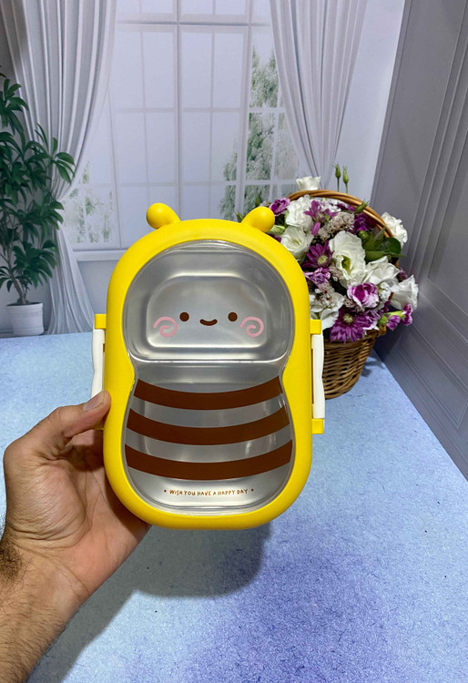 ظرف غذا با طرح فانتزی زنبور دارای دو طبقه است. یک طبقه استیل با دو محفظه جداگانه و یک طبقه پلاستیکی است. دارای در قفل دار و واشر است. قابل استفاده داخل فر و ماکروفر میباشد. مناسب مدرسه ، محل کار ، مهد و...