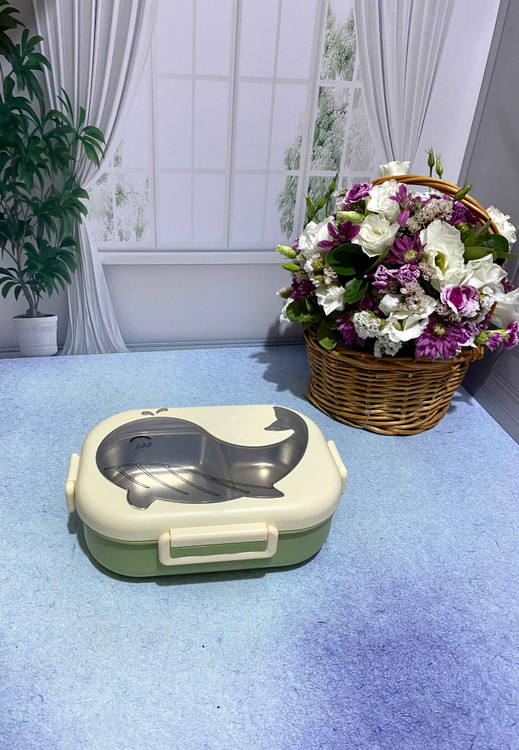 ظرف غذا طرح نهنگ دارای دو طبقه است که یک طبقه استیل و دیگری پلاستیک است. دارای در قفل دار و واشر و قاشق است. مناسب مدرسه ، مهد ، محل کار و...