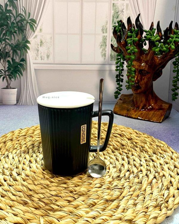 ماگ سرامیکی طرح مینیمال دارای در و قاشق استیل است. مناشب استفاده روزانه برای انواع نوشیدنس های سرد و گرم در منزل و محل کار میباشد.